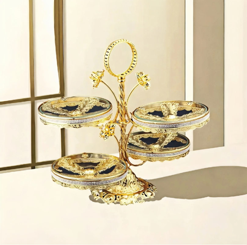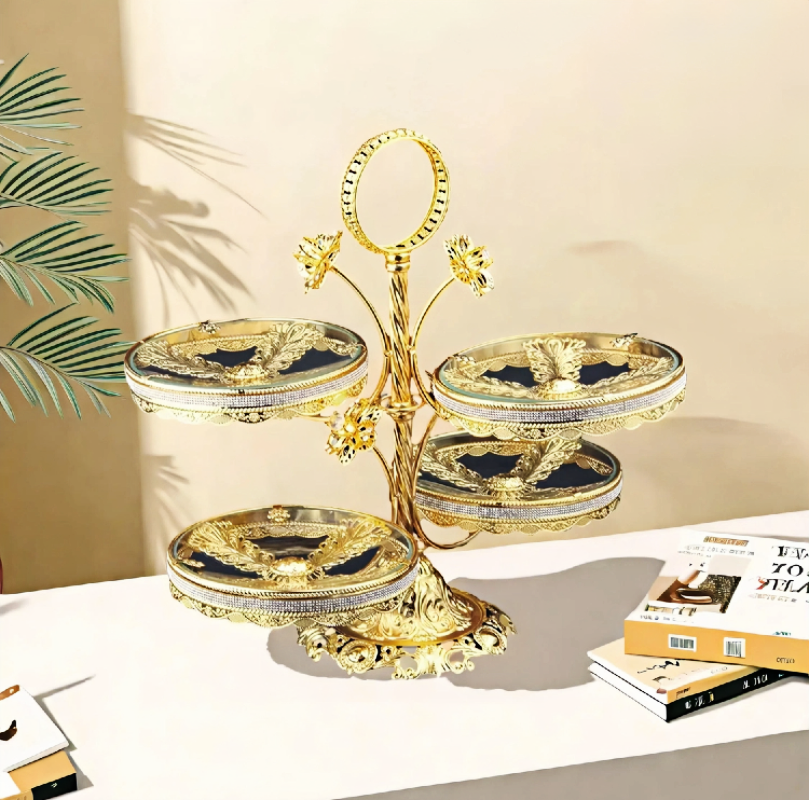 Luxurious gold-plated glass multi-layer fruit tray HXC-0001
