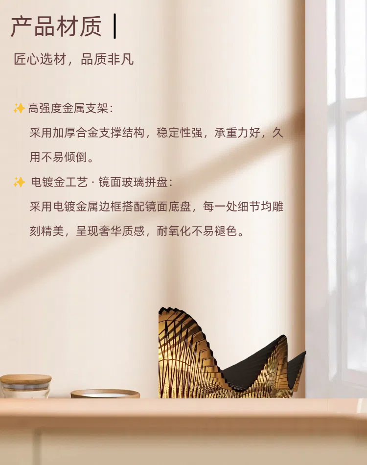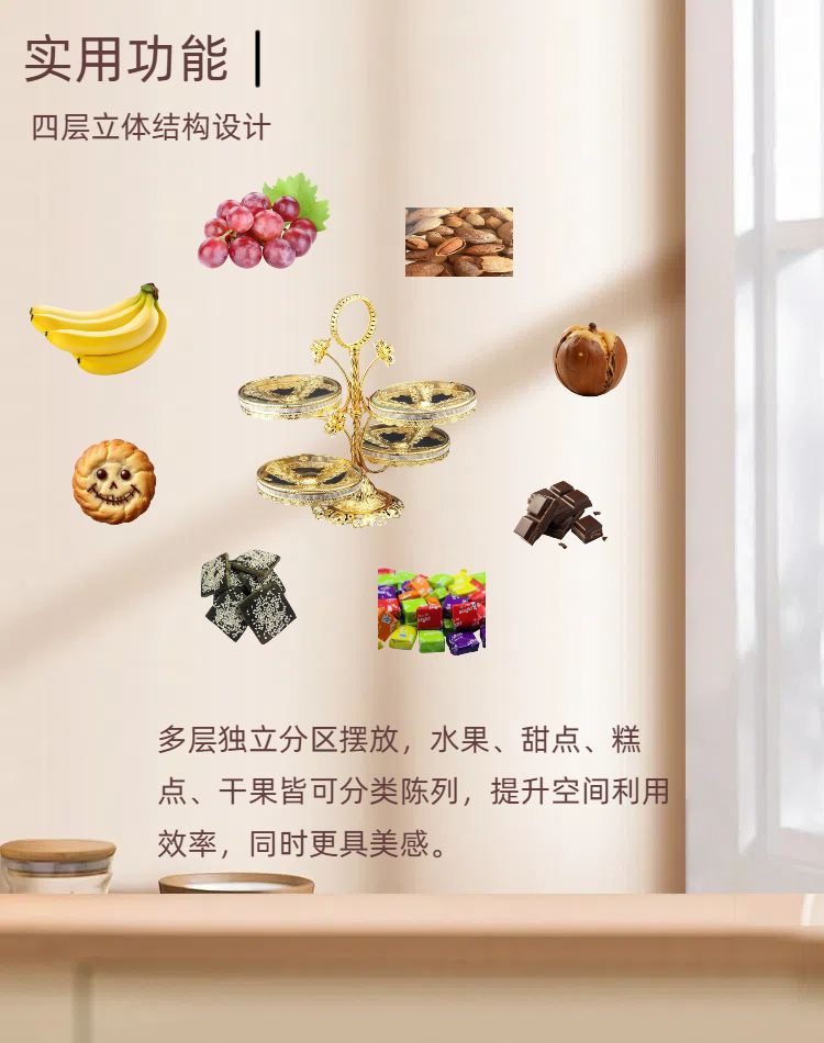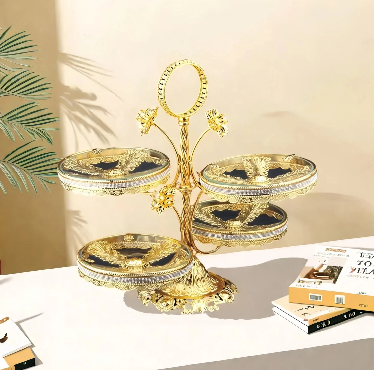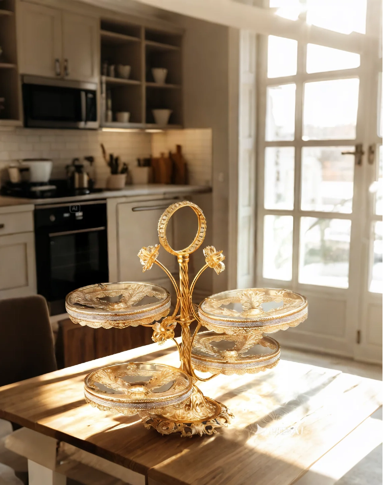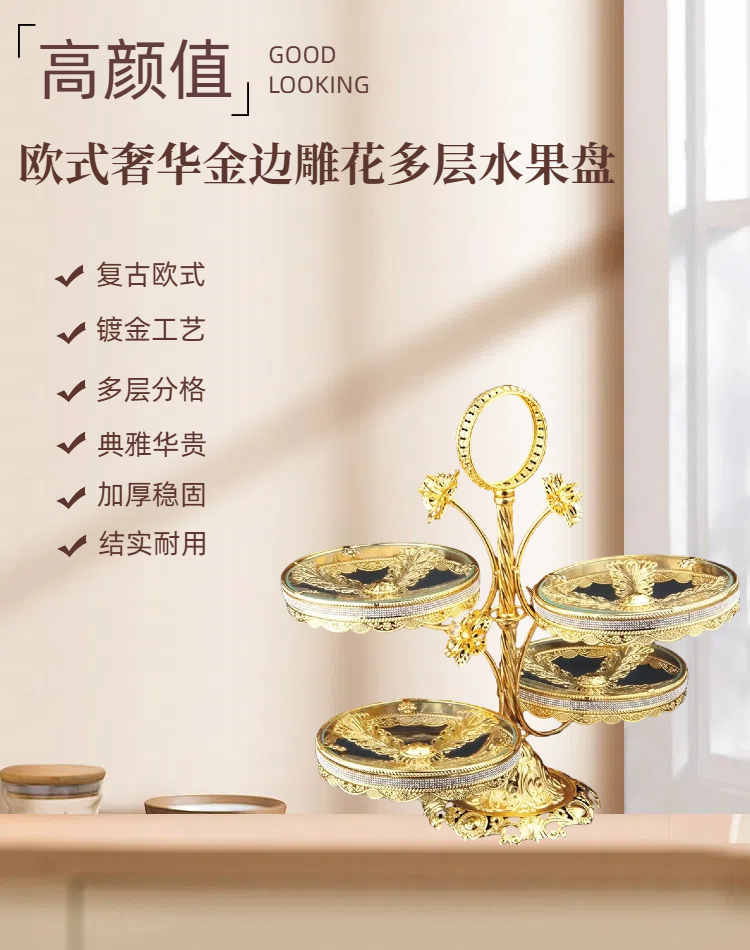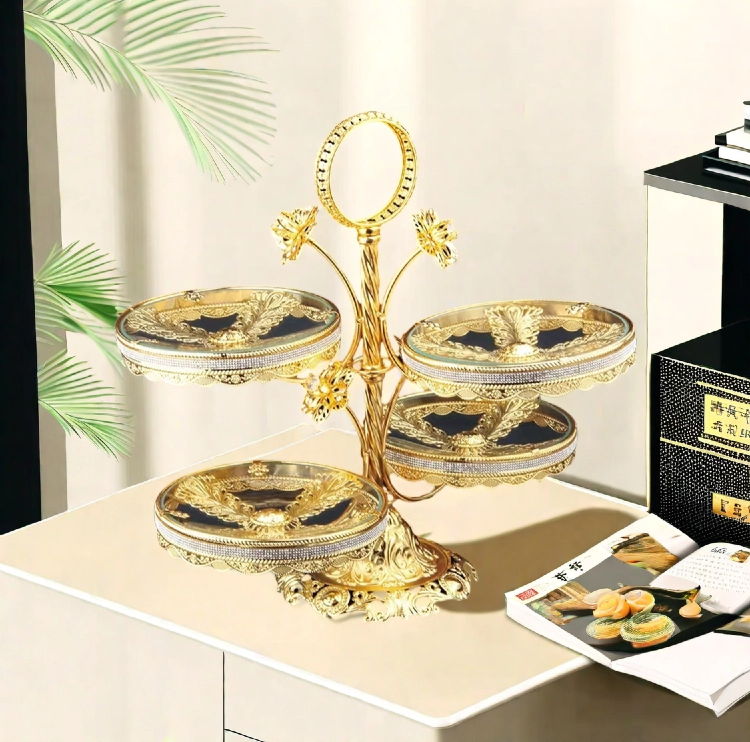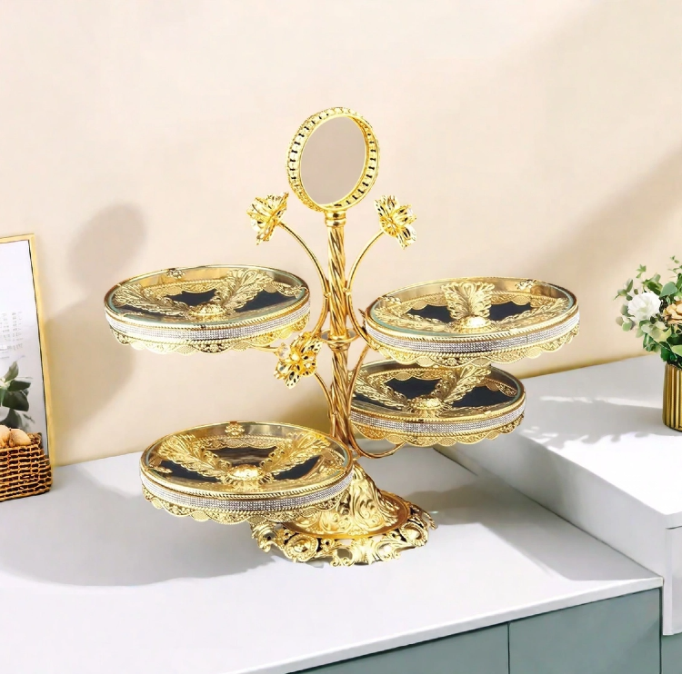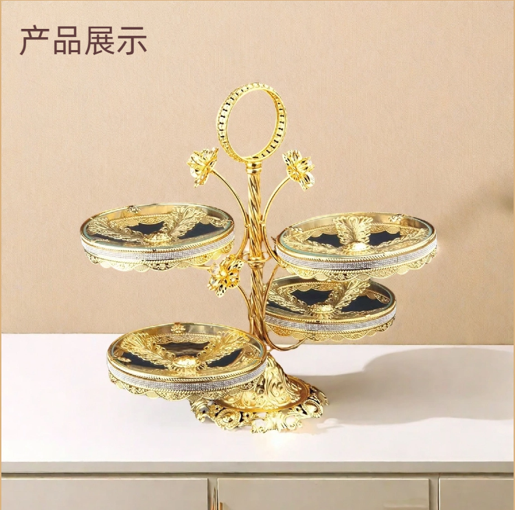 镀金,钢化玻璃,多层果盘HX-S-0002-01