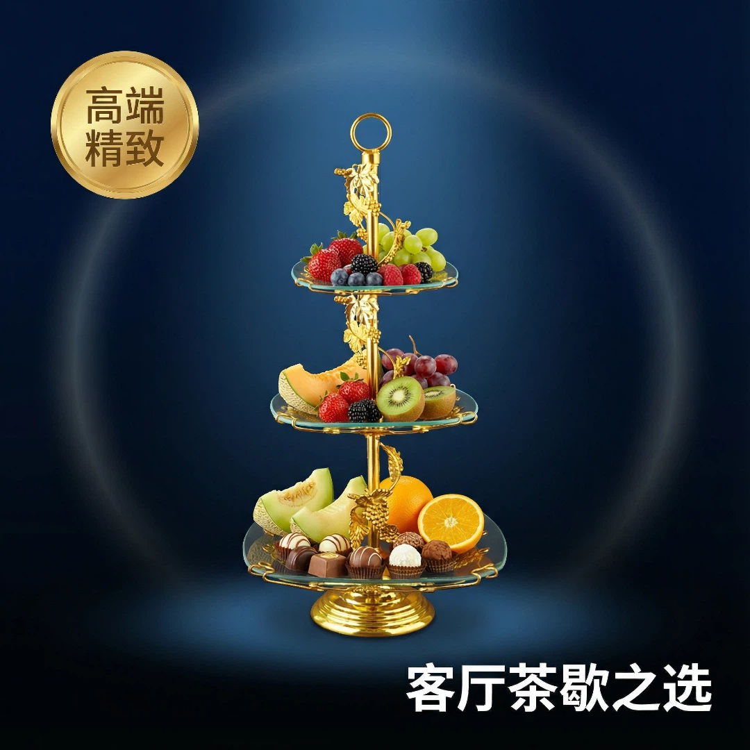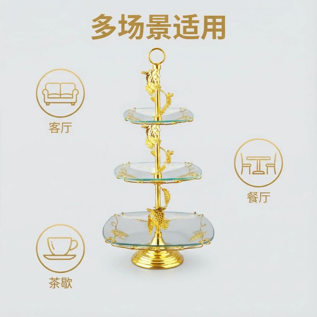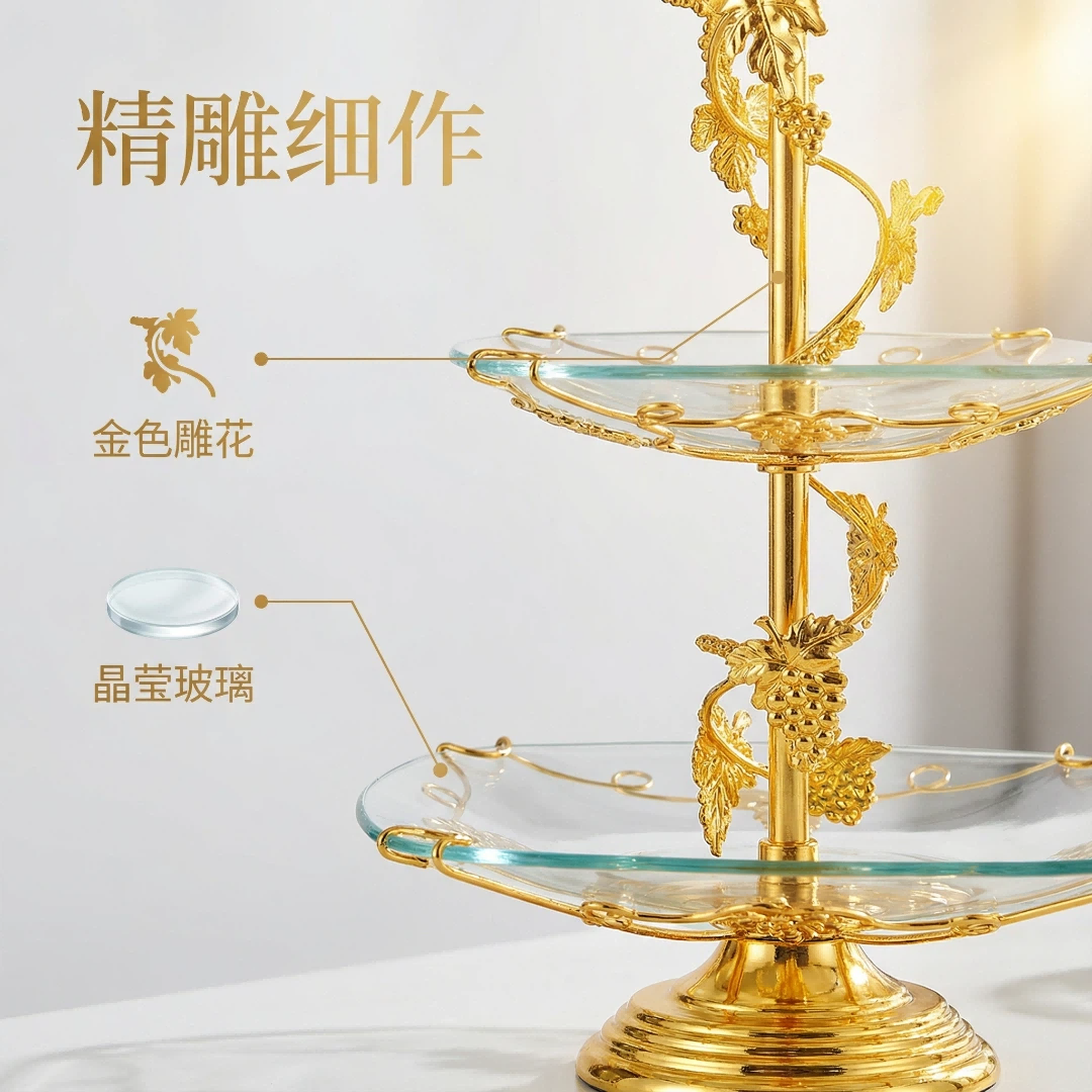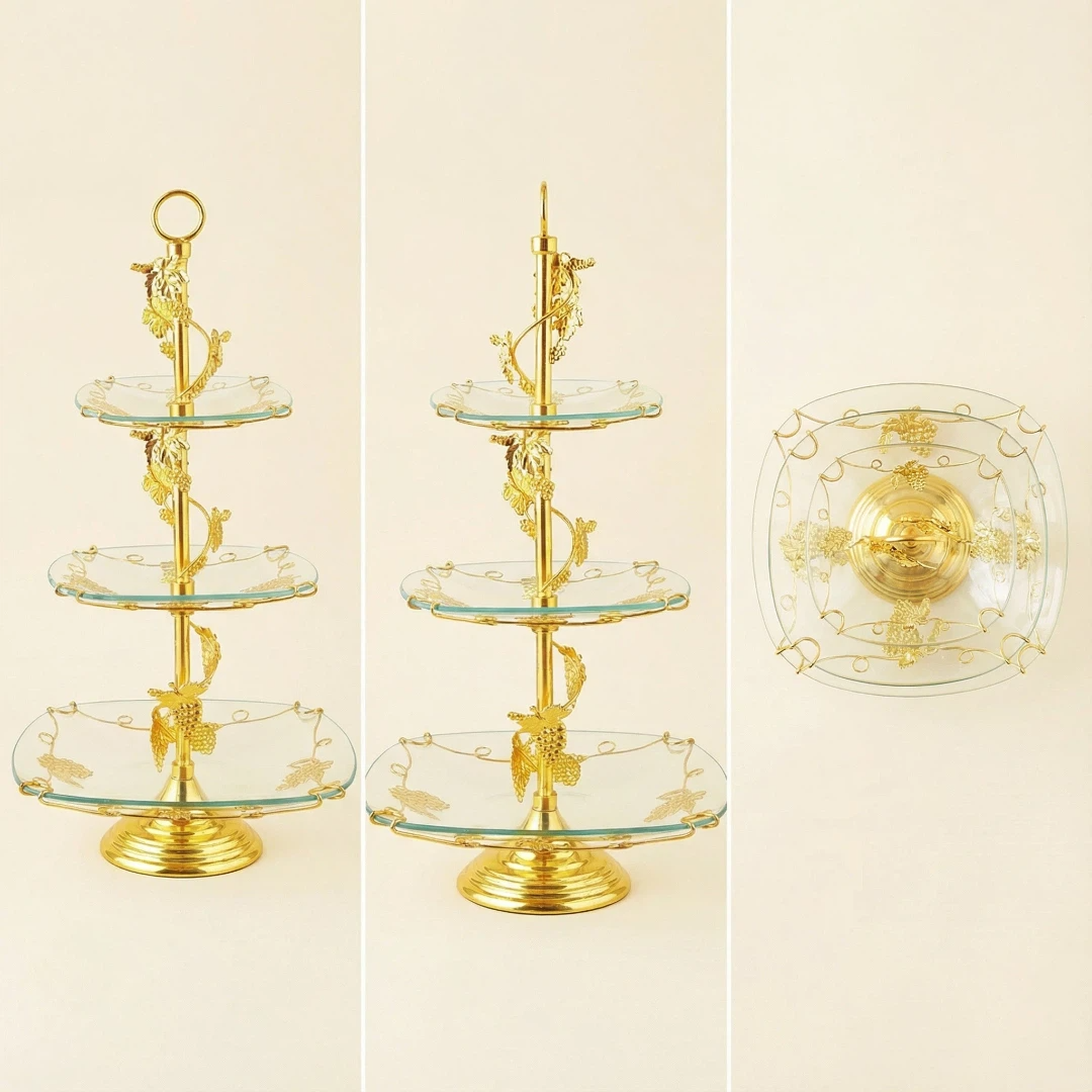 镀金,钢化玻璃,多层果盘HX-S-0012-01