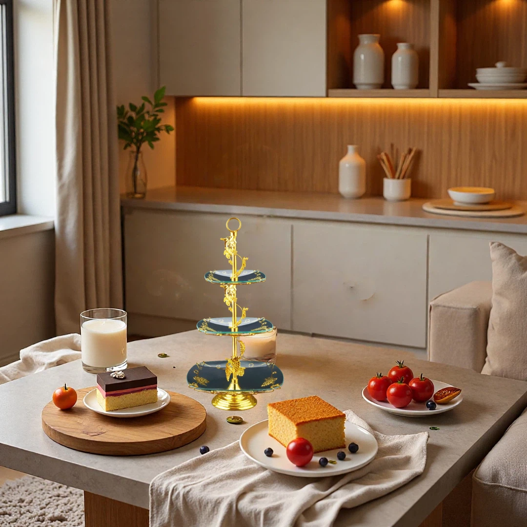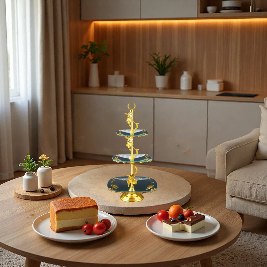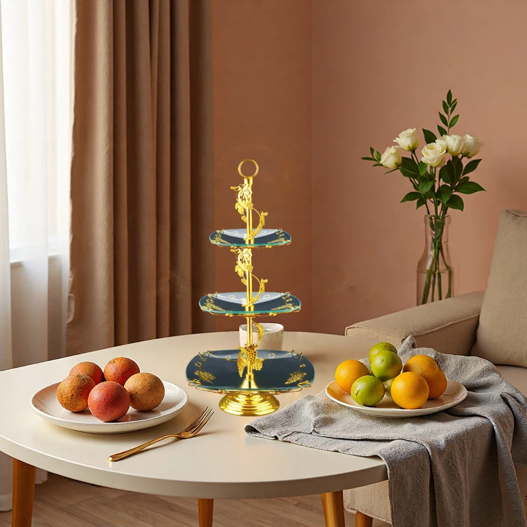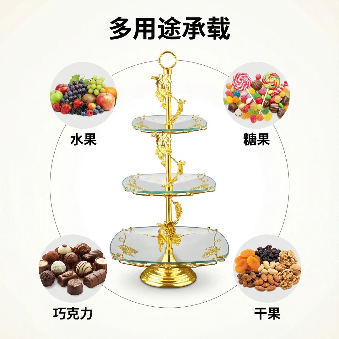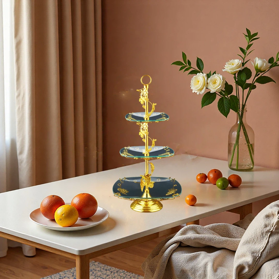 镀金,钢化玻璃,多层果盘HX-S-0012-01