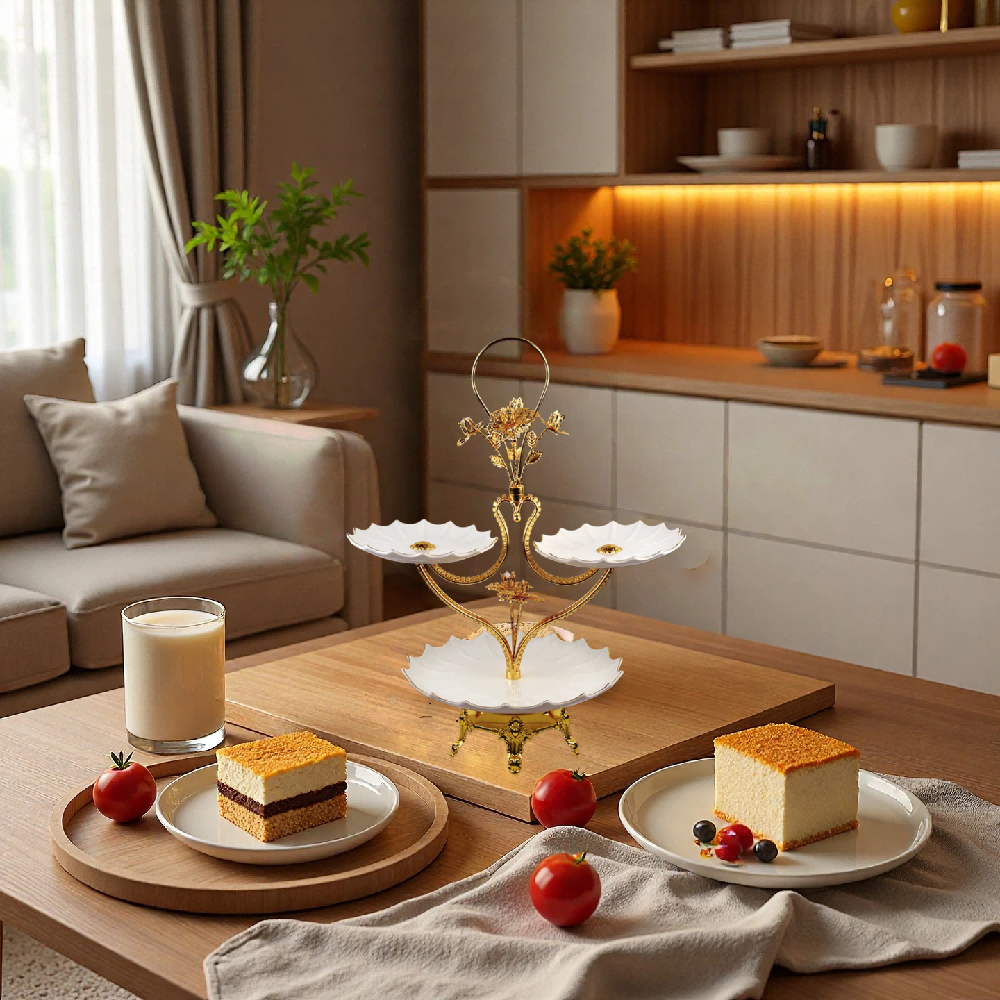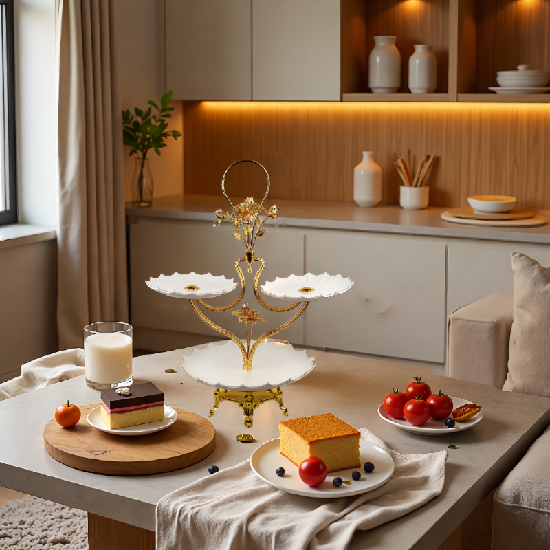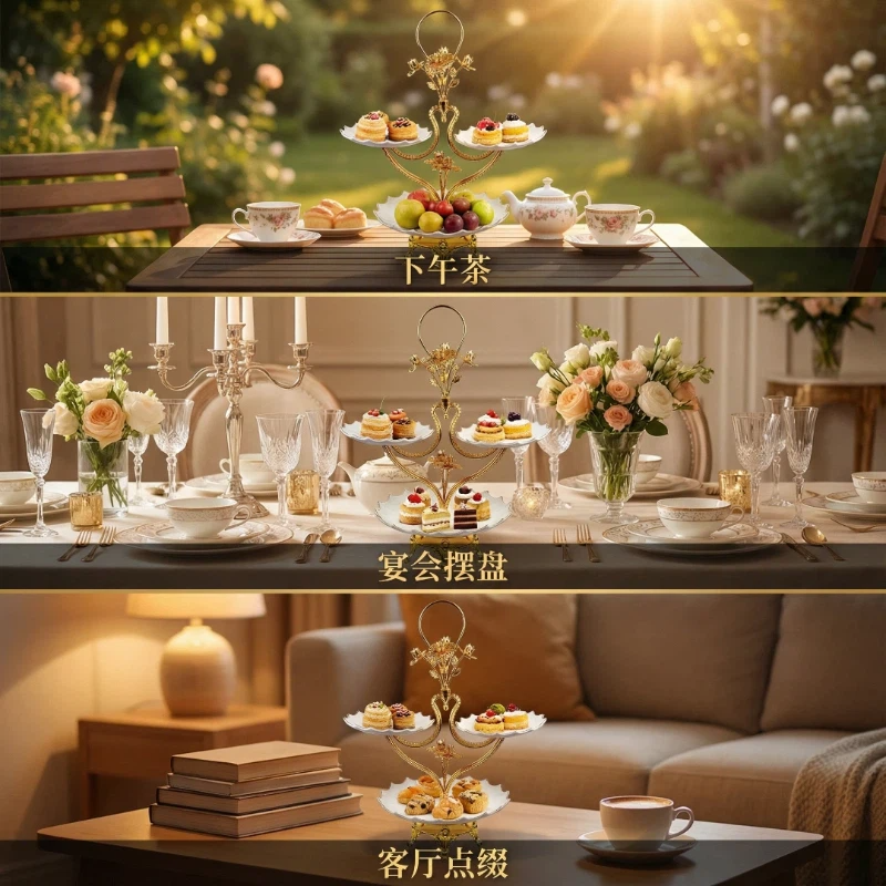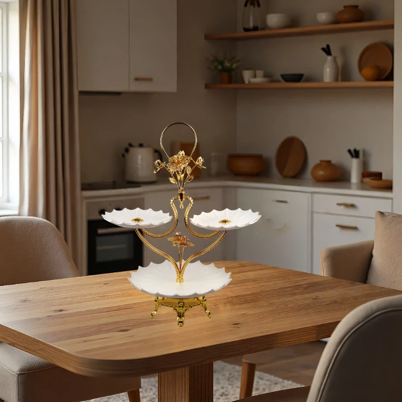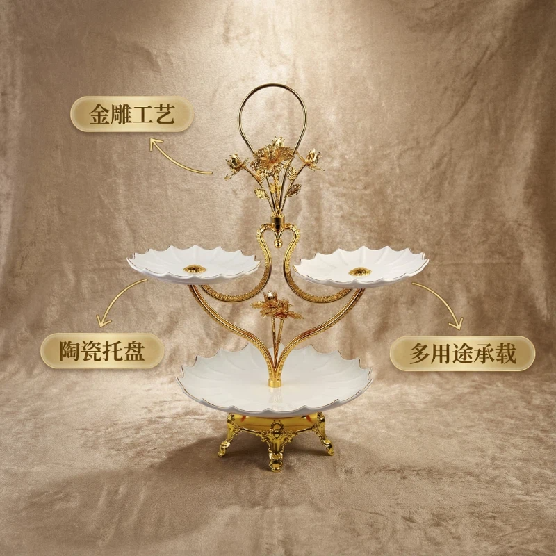 镀金,陶瓷托盘,多层果盘HX-S-0018-01